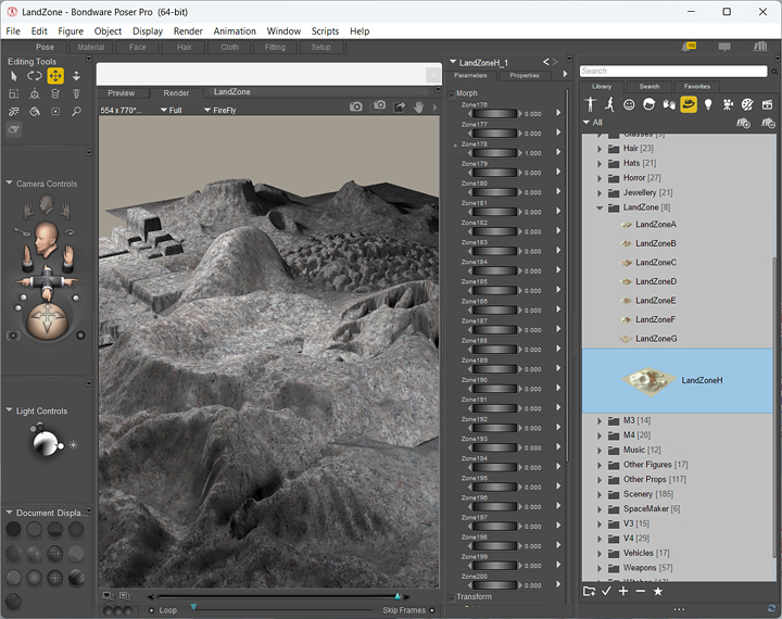 3. The next time you start Poser the props should be available in the Libraries\Props\LandZone menu section.