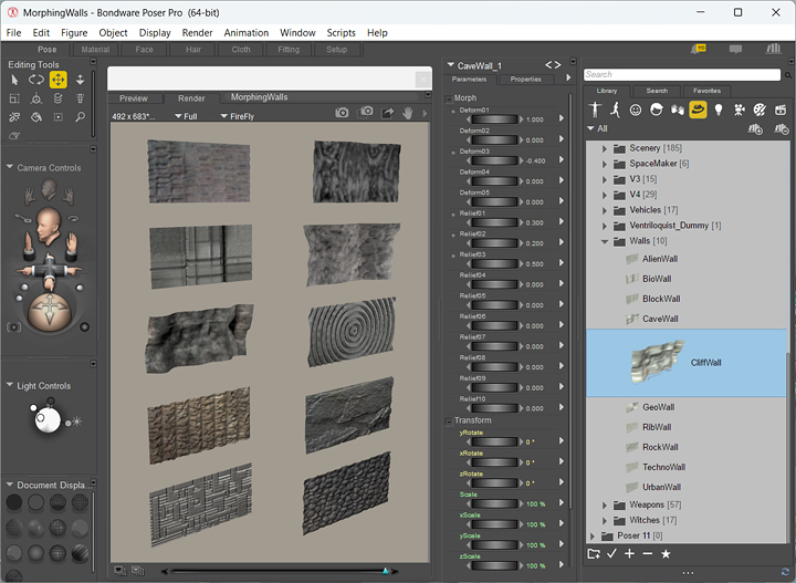 1. Unzip the MorphingWalls file above to the correct location in your Poser folder