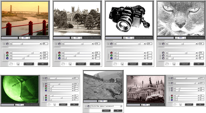A collection of 8 plug-in filters for use with Adobe Photoshop or compatible host applications. They offer a series of effects based on traditional photography equipment and techniques. Ideal for the beginner or for those photographers who are just moving over to digital-editing and wish to use effects that seem more familiar to them.