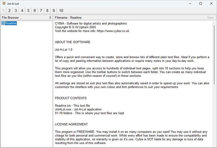 1. Unzip the JotALot.zip file above to a suitable folder on your hard drive, for example... C:\Cybia\JotALot.