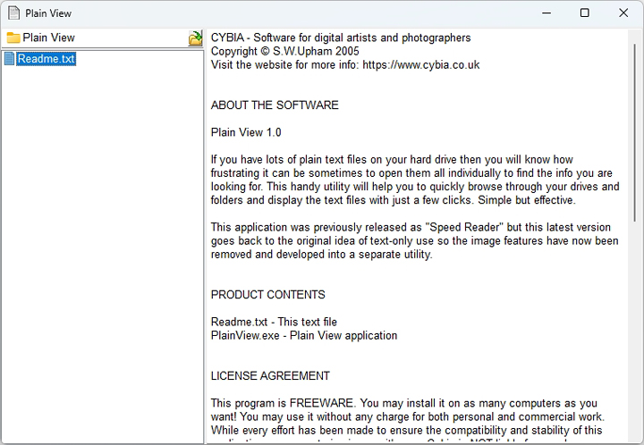 1. Unzip the PlainView.zip file above to a suitable folder on your hard drive, for example... C:\Cybia\PlainView.