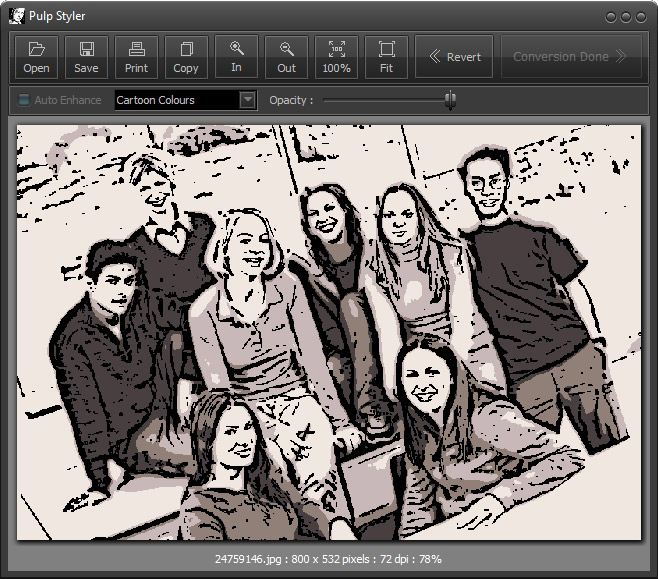 Pulp Styler is very fast and easy to use. Just click on the Open button and choose a suitable photograph or 3D rendered image, then click the Start Conversion button and watch the app automatically do the hard work for you!
