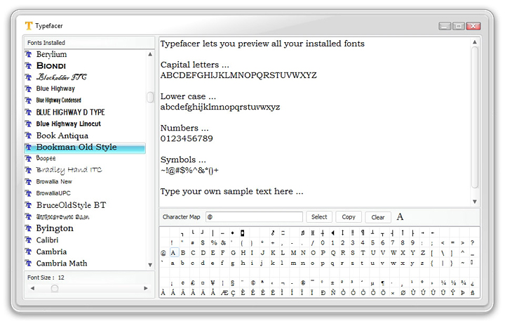 A basic character map is also included, which allows you to select and copy symbols easily.