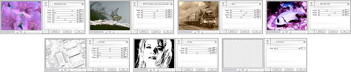 A collection of 8 plug-in filters for use with Adobe Photoshop or compatible host applications. Originally created back in the 90's, these filters have been updated several times and converted into a number of different versions. They provide the user with a base of very simple effects that can be handy on a regular basis. You will probably have already come across these many times over the years on various websites and magazine cover CDRom's. It has always surprised me that people still seem to enjoy using them, so I will keep providing the downloads as long as they are wanted!